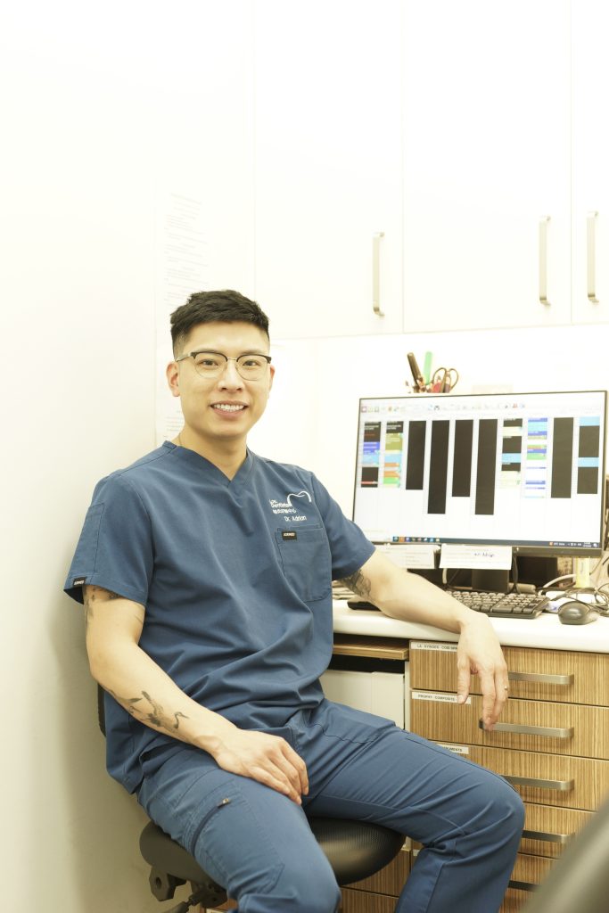 在诊室里,Calvin 医生以温和著称,尤其善于安抚紧张和焦虑的患者,坚定支持“无痛牙科”的理念,并致力于患者教育,帮助他们及早预防问题。